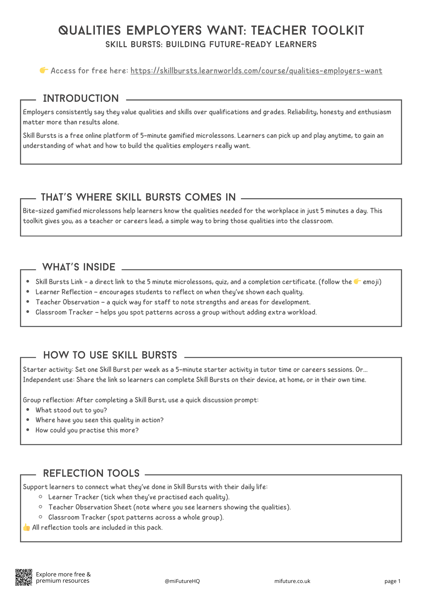 No cost. No prep. Just a ready-to-use resource that helps your students develop the qualities employers value most.